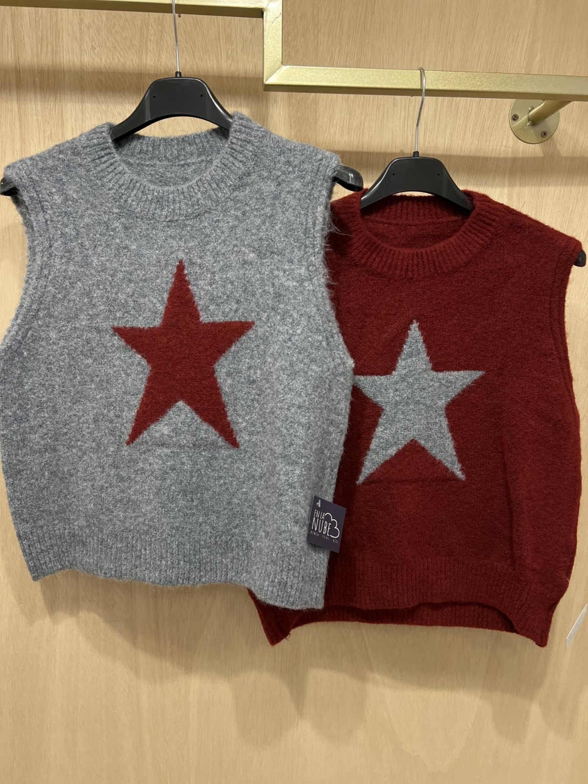 Chaleco sin mangas de punto con una gran estrella tejida en la parte delantera.