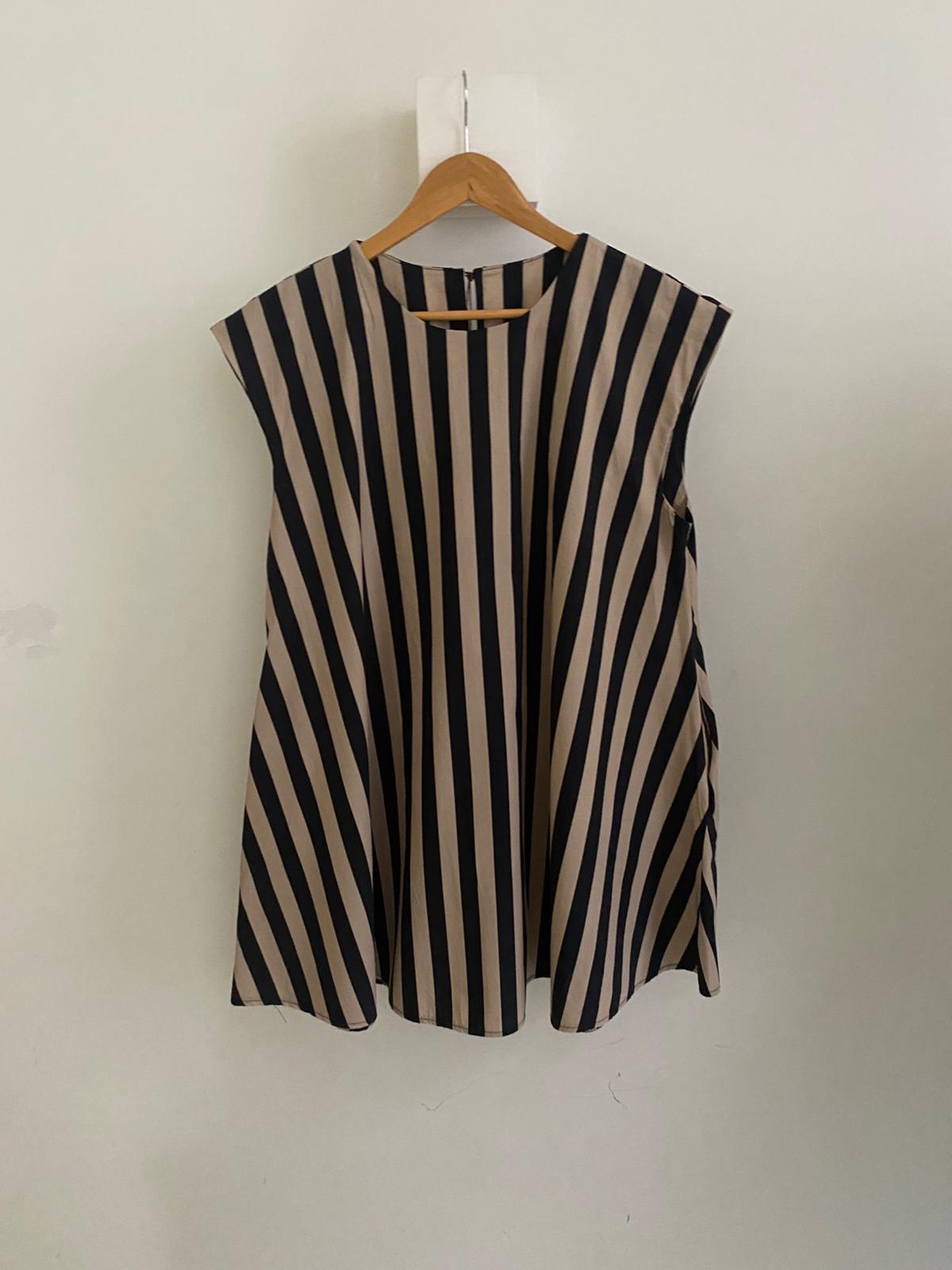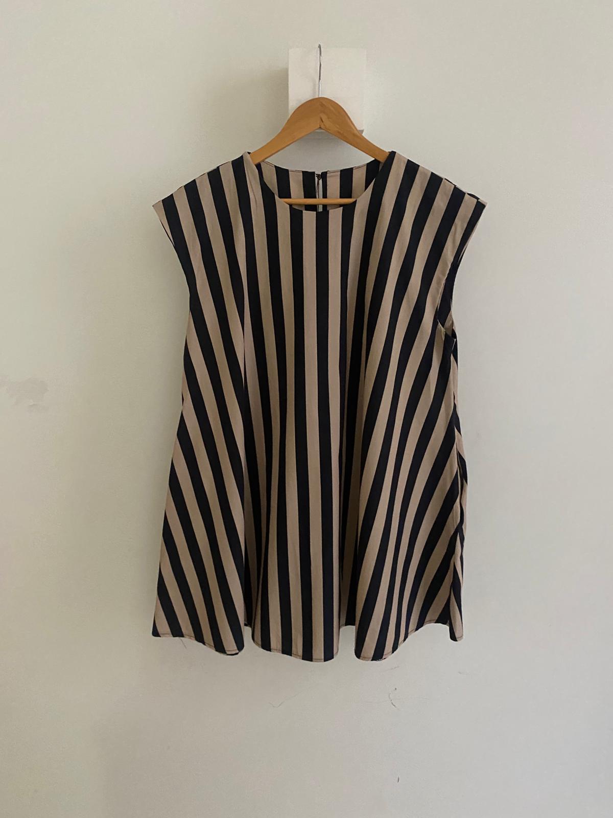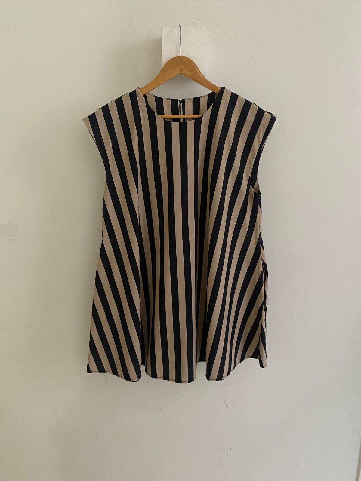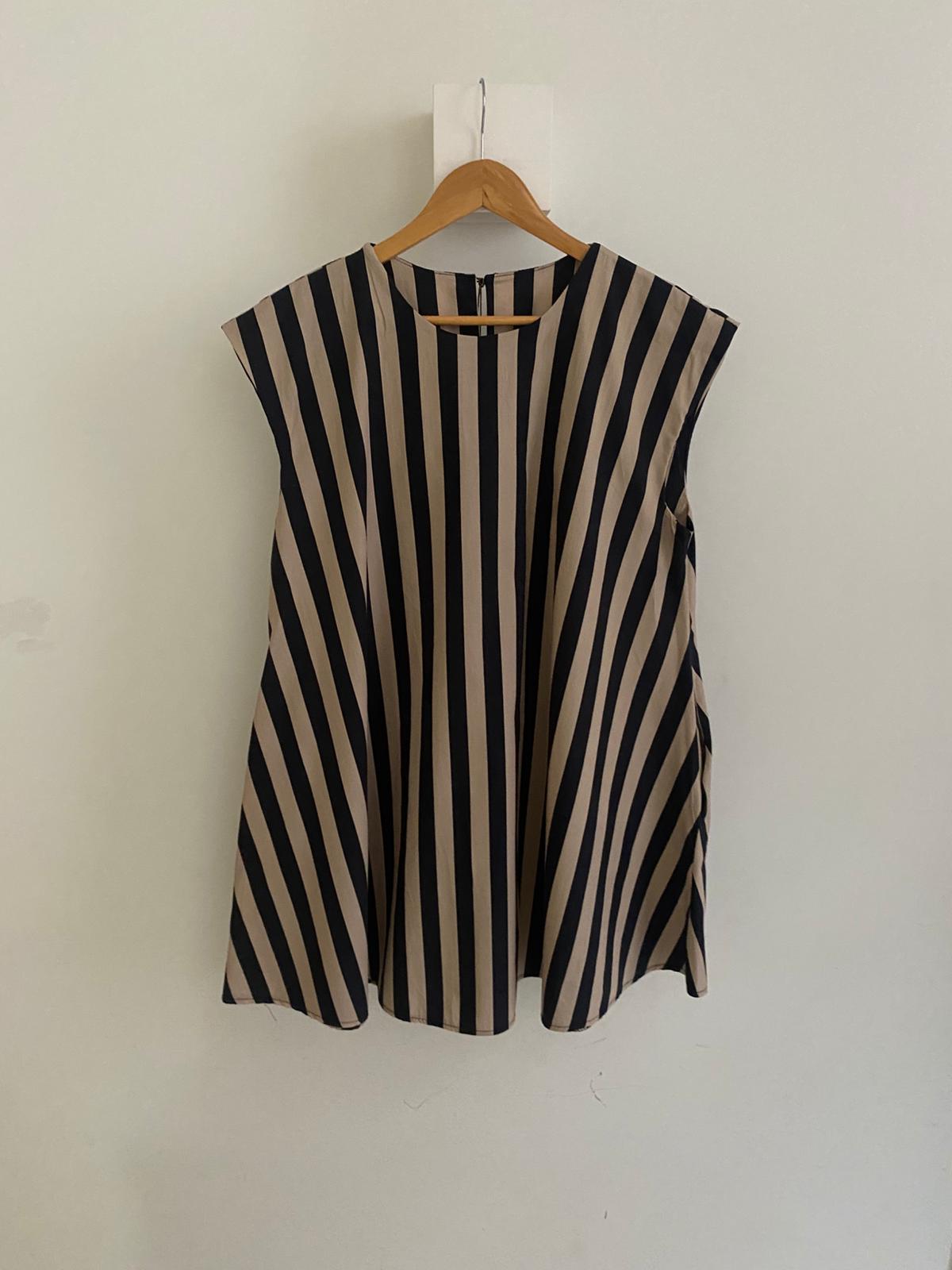 • Vestido sin mangas a rayas con bolsillos